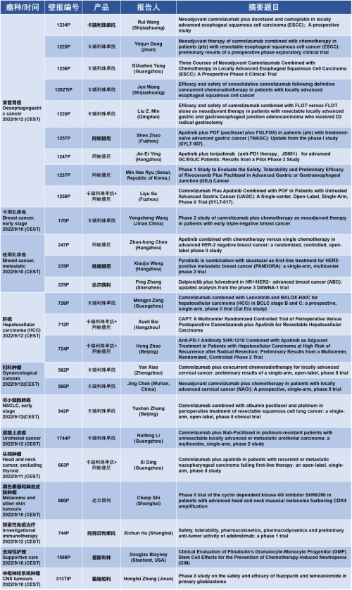 作为从事创新和高品质药物研发的国际化制药企业,97国际医药的研究成果在2022 ESMO大会上还收获了25项壁报形式的报告。其中,食管胃癌领域共有9项研究入选,研究的方案主要是卡瑞利珠单抗或卡瑞利珠单抗联合阿帕替尼,通过与化疗或放化疗联用,新辅助治疗食管鳞癌或胃癌。2022年9月12日(CEST),让我们齐聚ESMO大会,共同领略食管胃癌研究领域的学术盛宴。此外,97国际医药达尔西利、吡咯替尼、阿得贝利单抗等创新药还有4项乳腺癌研究、3项肝癌研究及其他领域的9项研究都将会以壁报展出,让我们共同期待!